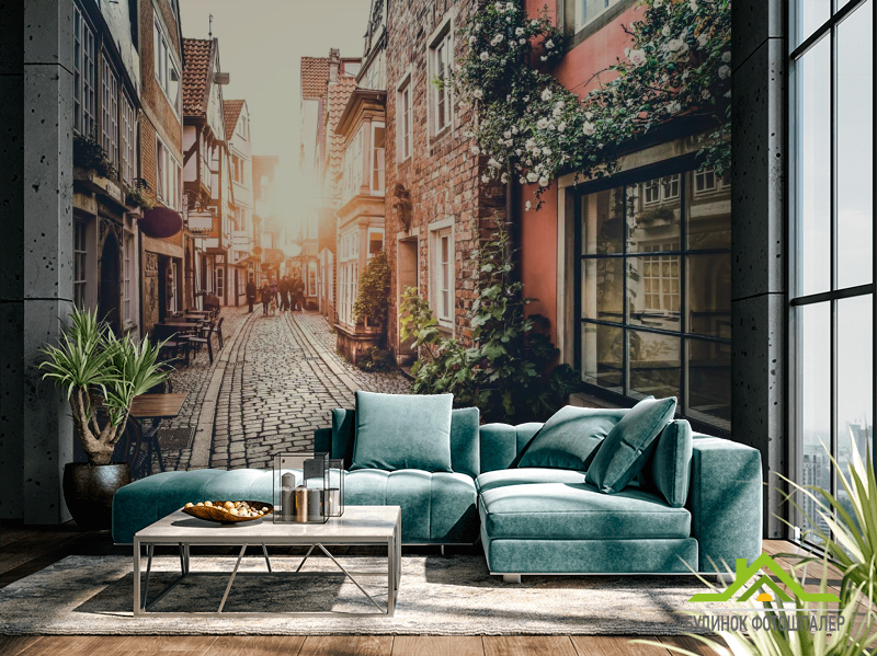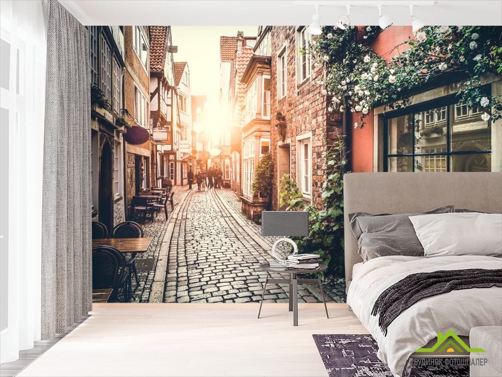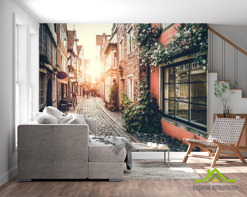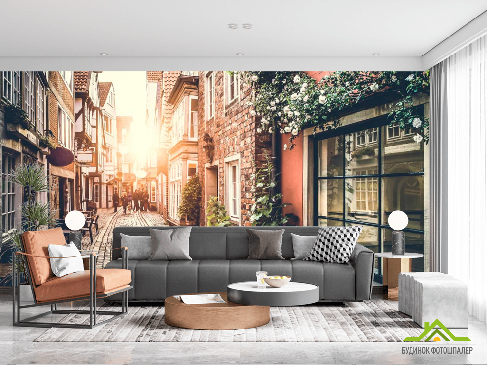 Фотошпалери Кафе на затишній вуличці Фотошпалери Кафе на затишній вуличці