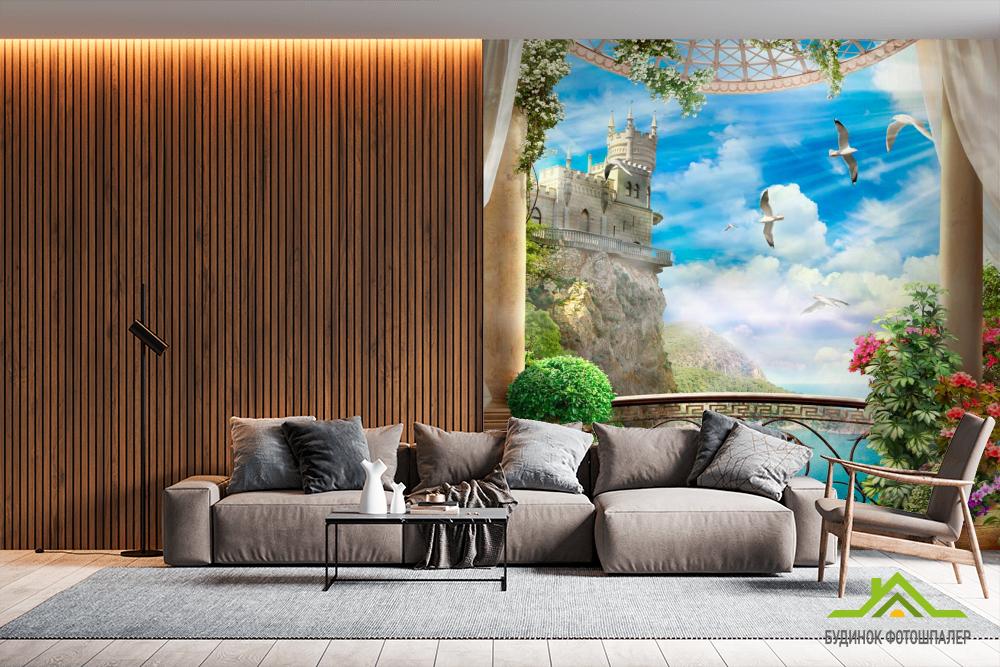 Фотошпалери Балкон, чайки, клумби Фотошпалери Балкон, чайки, клумби