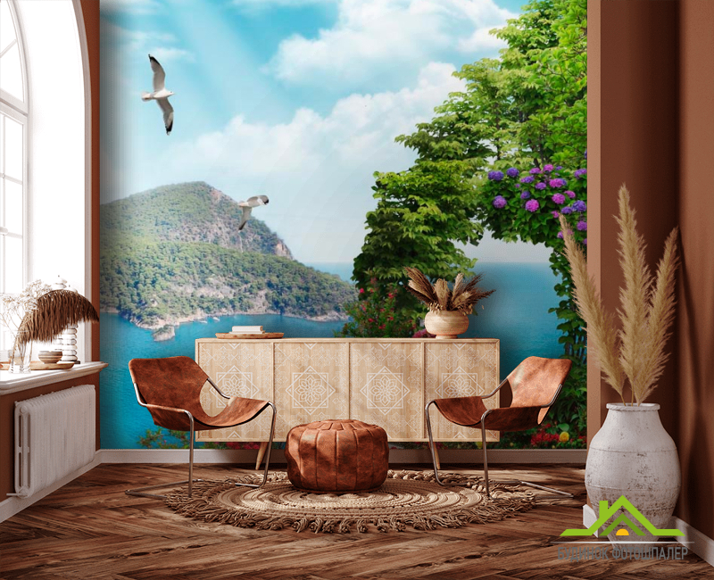 Фотошпалери Сходинки, квіти, острів Фотошпалери Сходинки, квіти, острів