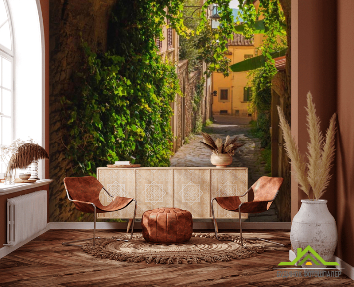 Фотошпалери Арочна вуличка з квітами Фотошпалери Арочна вуличка з квітами