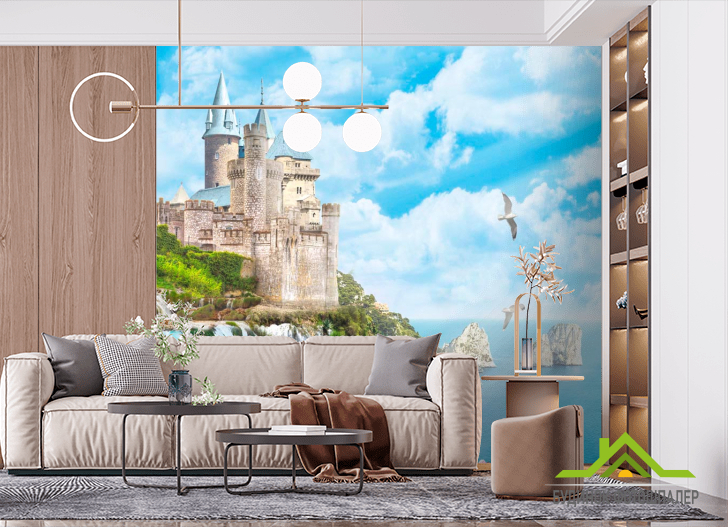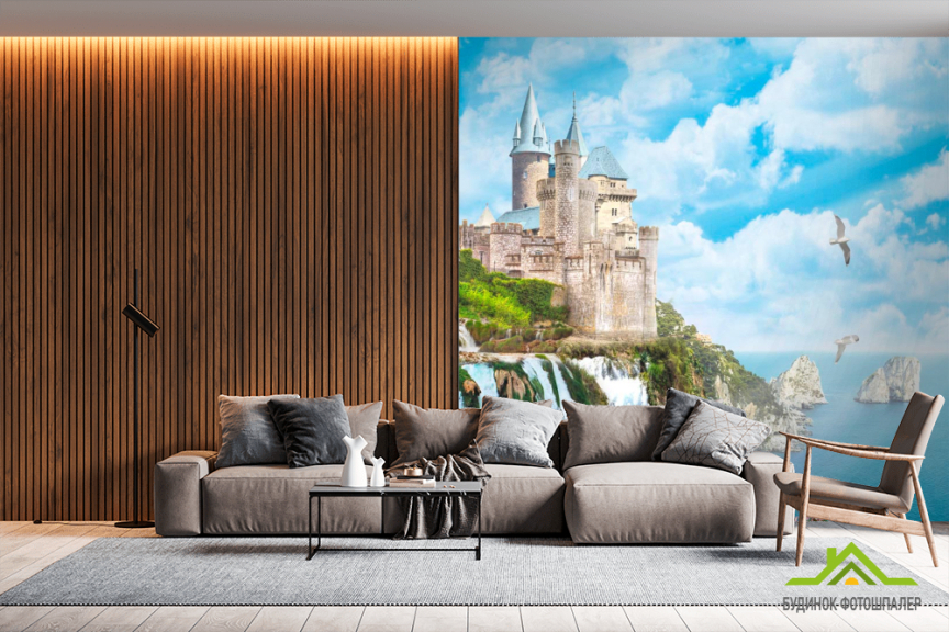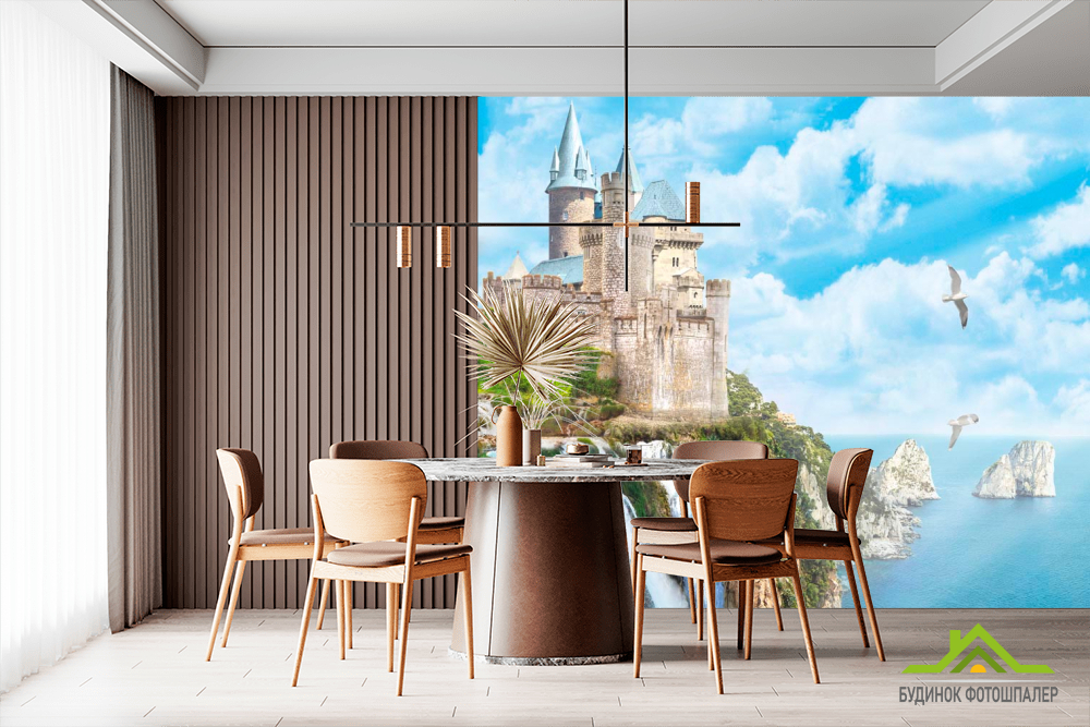 Фотошпалери Чайки, небо, замок Фотошпалери Чайки, небо, замок