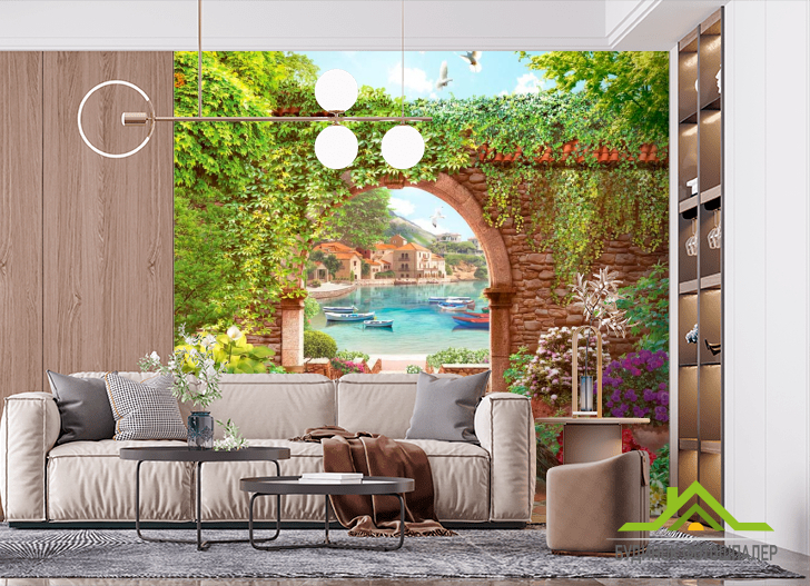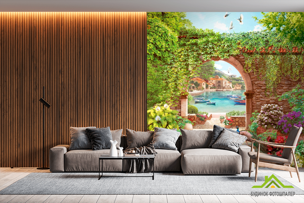 Фотошпалери Павичі, арка, квіти