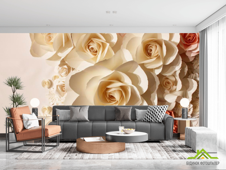Фотошпалери 3D паперові троянди