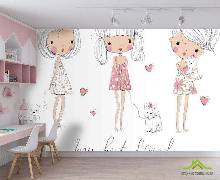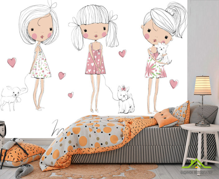 Фотошпалери Дівчинки з собачками Фотошпалери Дівчинки з собачками