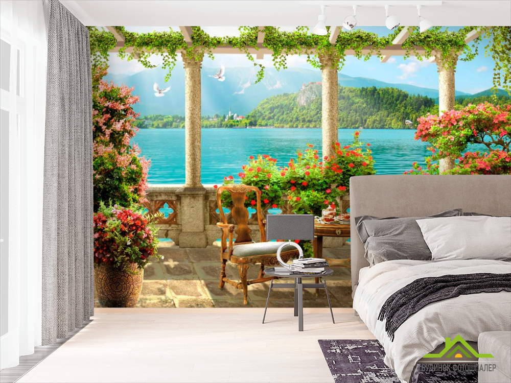 Фотошпалери Море, стілець, стіл, тераса
