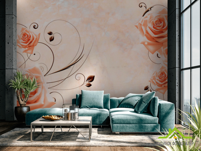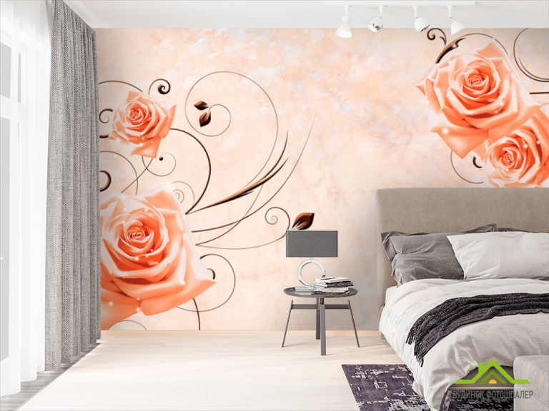 Фотошпалери 3D троянди на тлі ніжному Фотошпалери 3D троянди на тлі ніжному