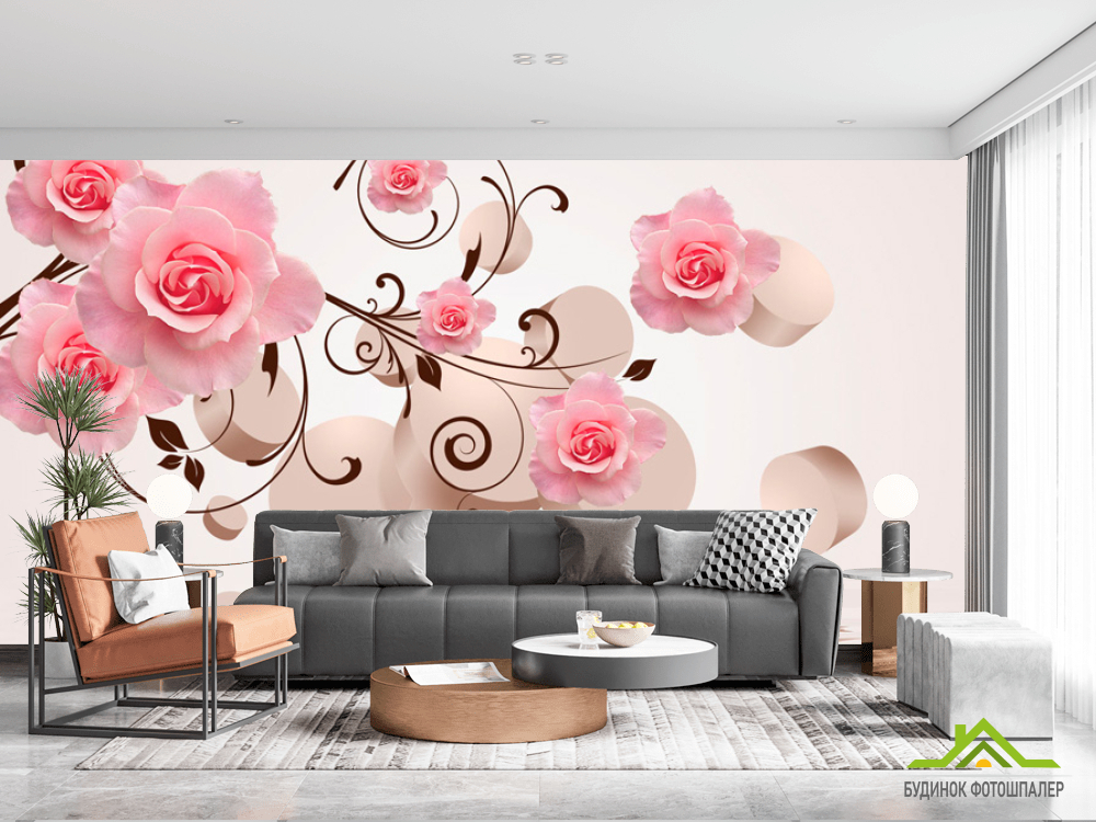 Фотошпалери 3D фігури з трояндами Фотошпалери 3D фігури з трояндами