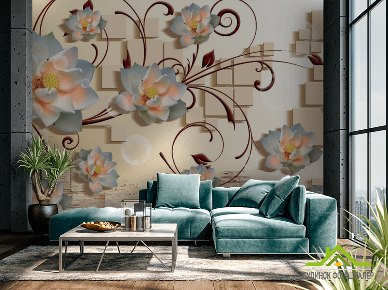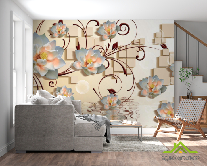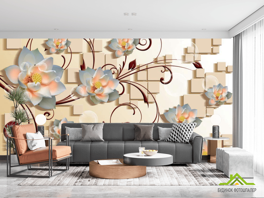 Фотошпалери Квіти 3d і квадрати Фотошпалери Квіти 3d і квадрати