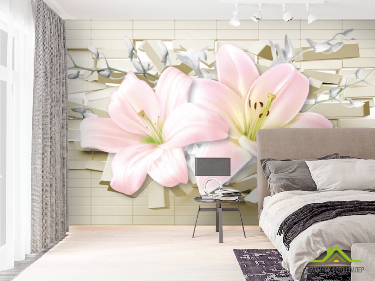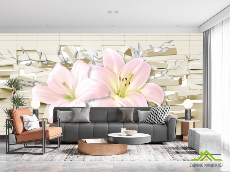 Фотошпалери Лілії 3д і цегла Фотошпалери Лілії 3д і цегла