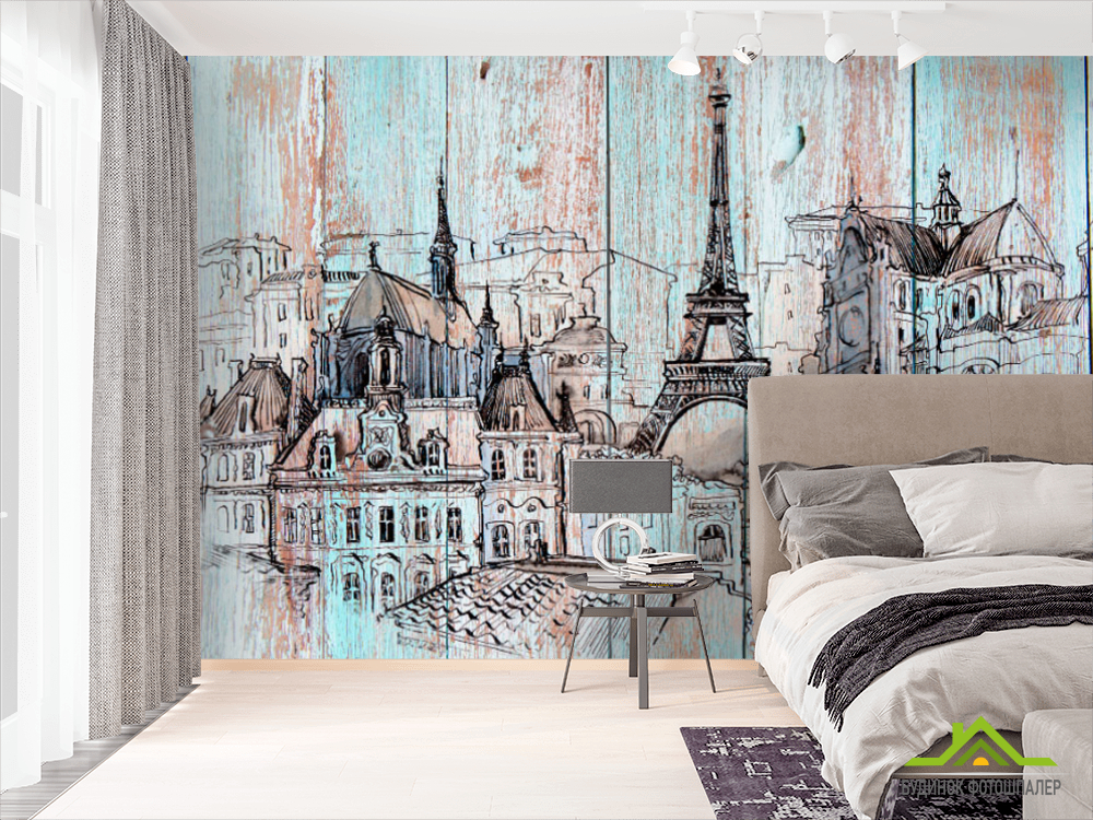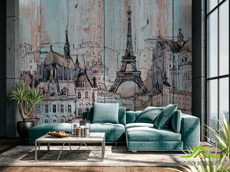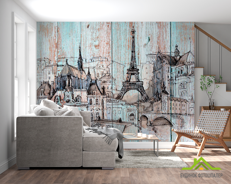 Фотошпалери Париж на деревяних дошках Фотошпалери Париж на деревяних дошках