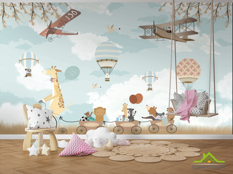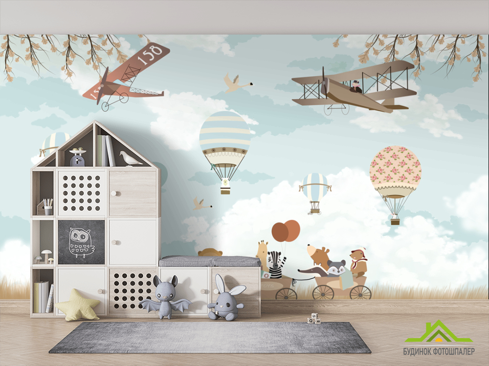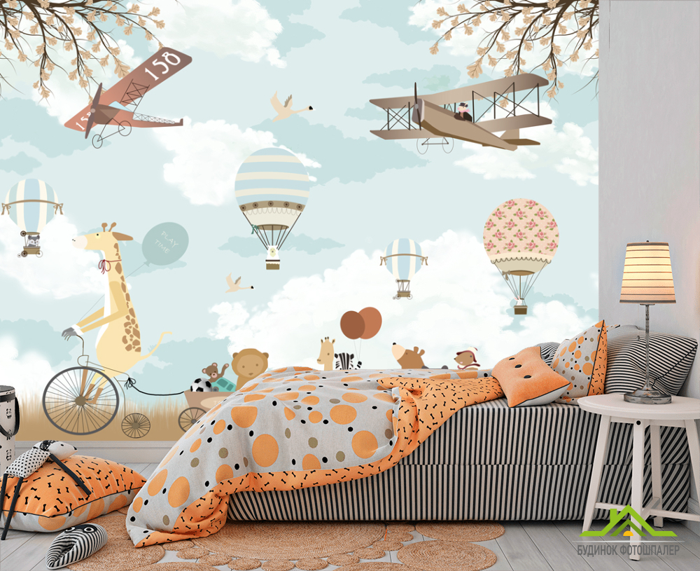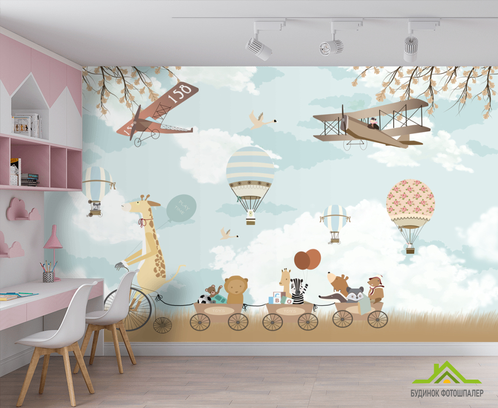 Фотошпалери Звери на велосипеде и воздушные шары Фотошпалери Звери на велосипеде и воздушные шары