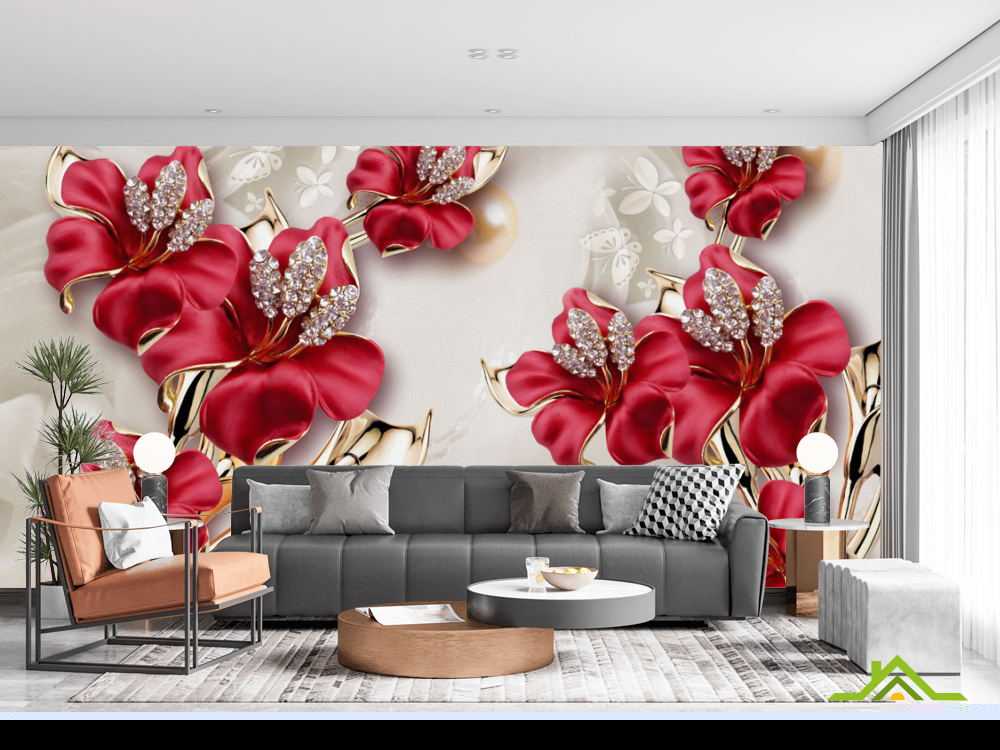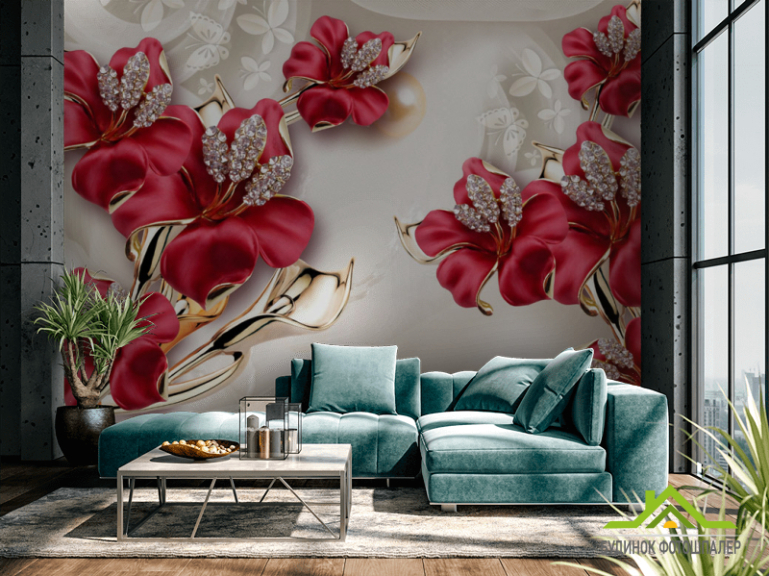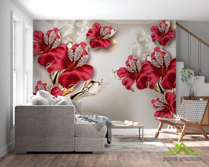Фотошпалери Бордові квіти 3Д Фотошпалери Бордові квіти 3Д