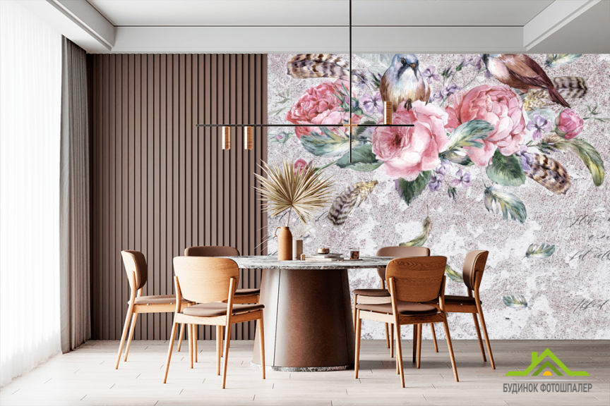 Фотошпалери Яскраві квіти на тлі бетону Фотошпалери Яскраві квіти на тлі бетону