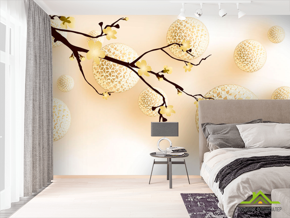 Фотошпалери Жовті сфери і гілочки Фотошпалери Жовті сфери і гілочки