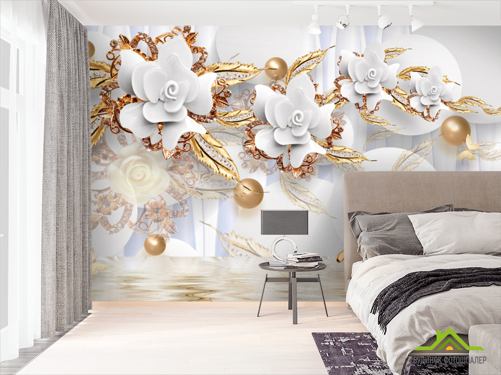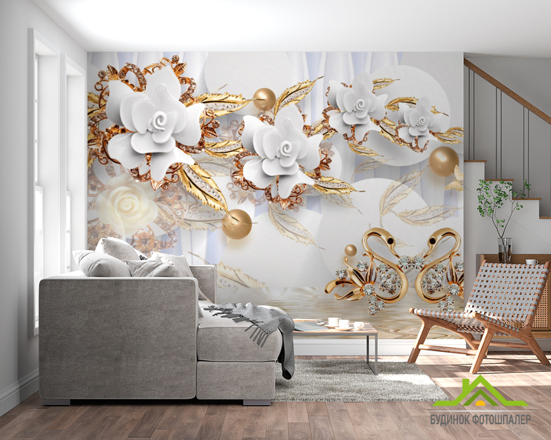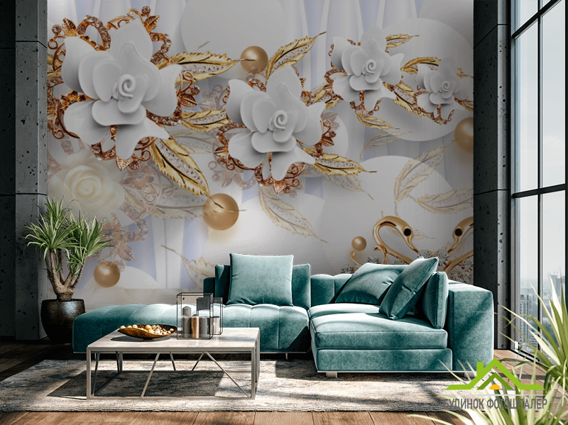 Фотошпалери Керамічні квіти з золотом Фотошпалери Керамічні квіти з золотом