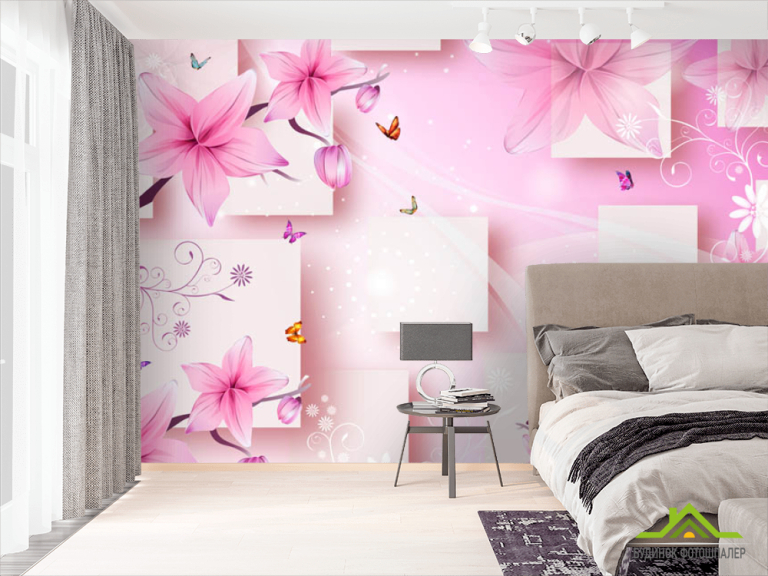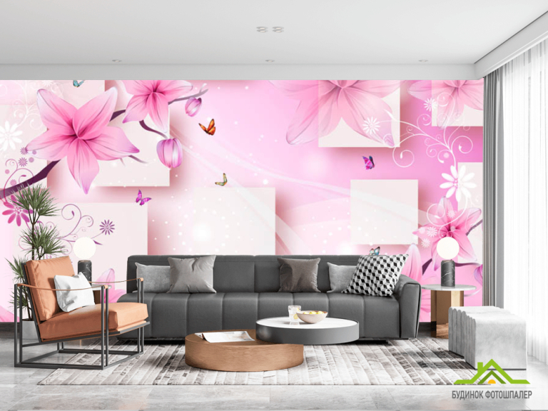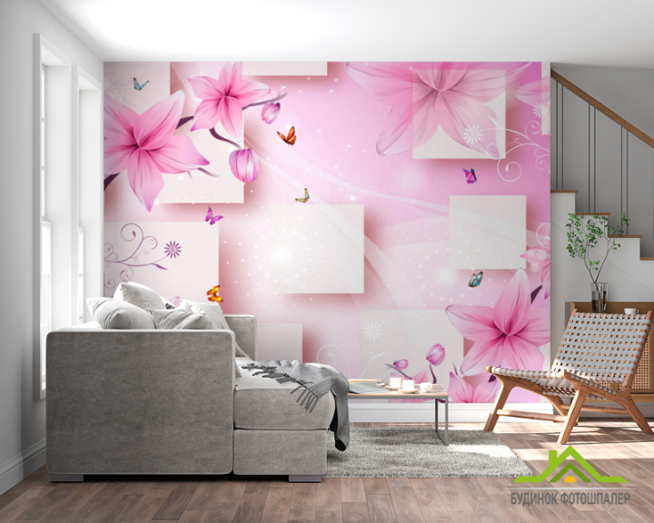 Фотошпалери 3д квадрати з квітами Фотошпалери 3д квадрати з квітами