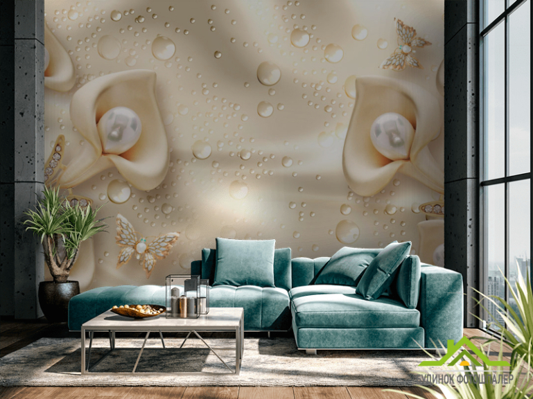 Фотошпалери Золоті 3д квіти