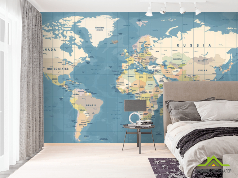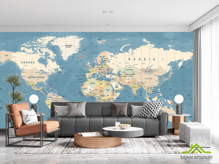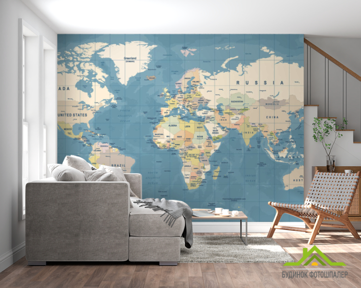Фотошпалери Карта світу на блакитному Фотошпалери Карта світу на блакитному