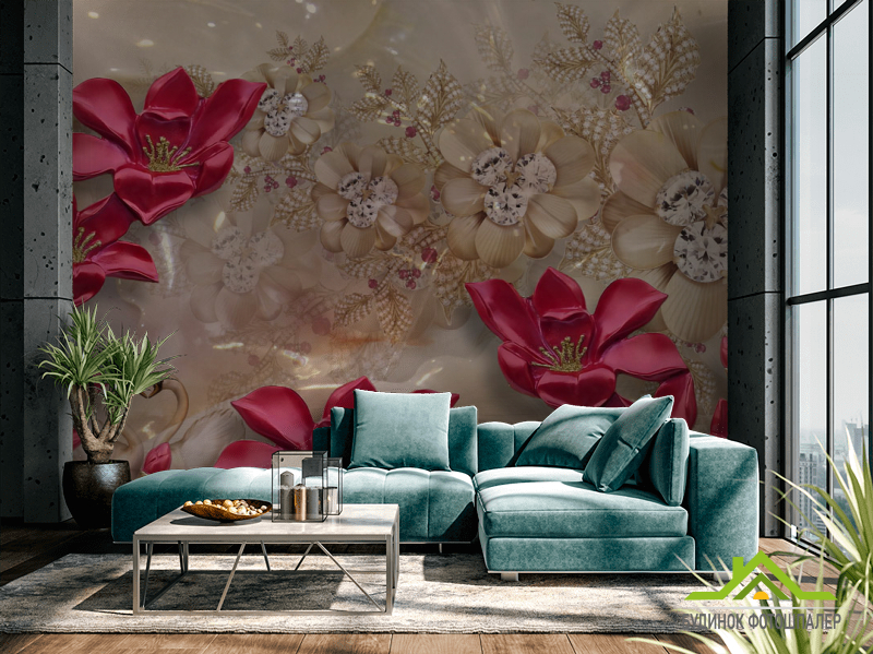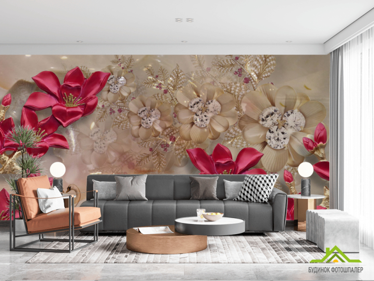 Фотошпалери Бордові квіти 3д Фотошпалери Бордові квіти 3д