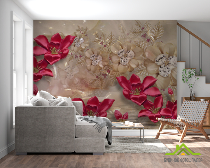 Фотошпалери Бордові квіти 3д
