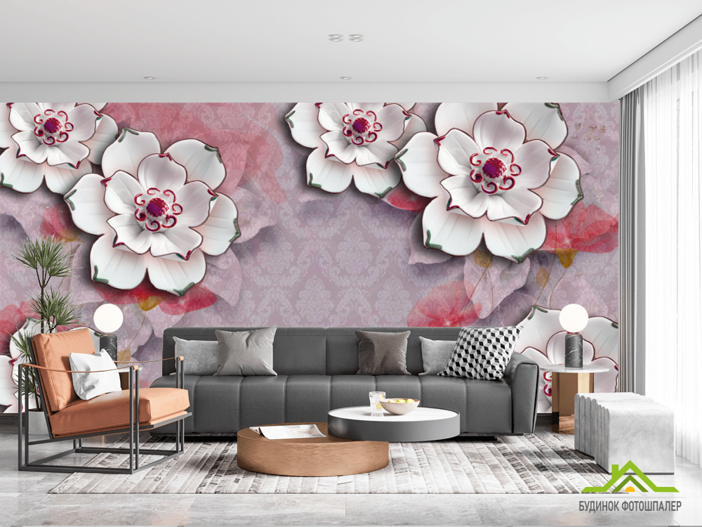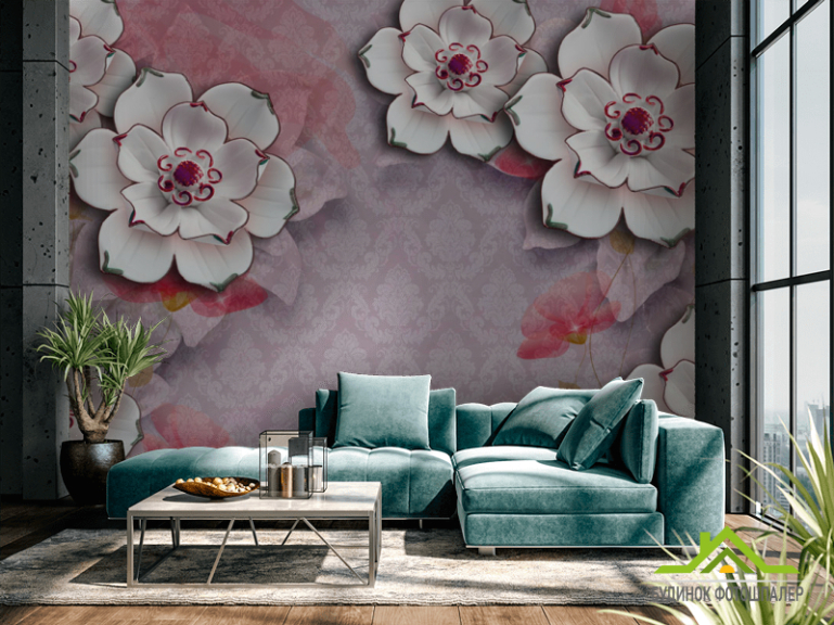 Фотошпалери Керамічні квіти на тлі барроко Фотошпалери Керамічні квіти на тлі барроко