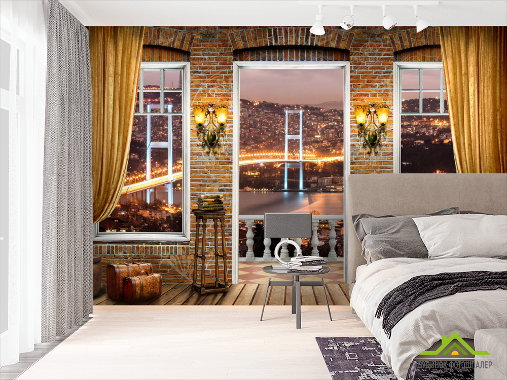 Фотошпалери Вид з вікна на міст Фотошпалери Вид з вікна на міст