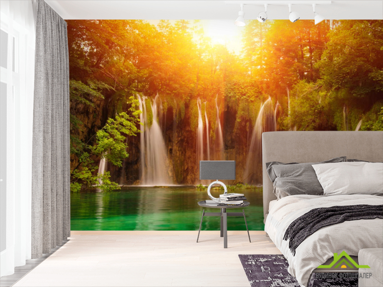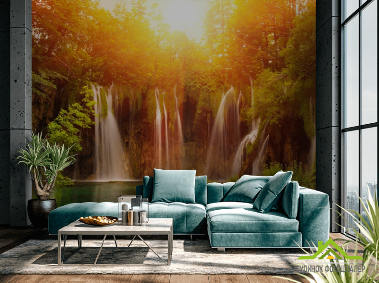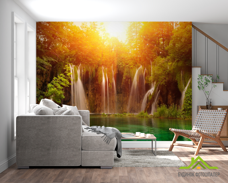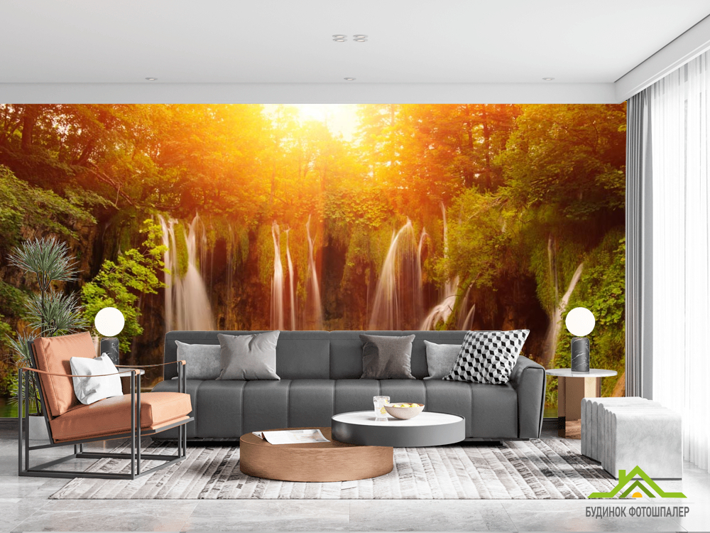 Фотошпалери сонце над водоспадом Фотошпалери сонце над водоспадом