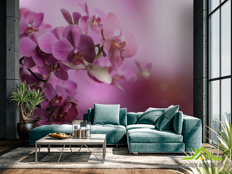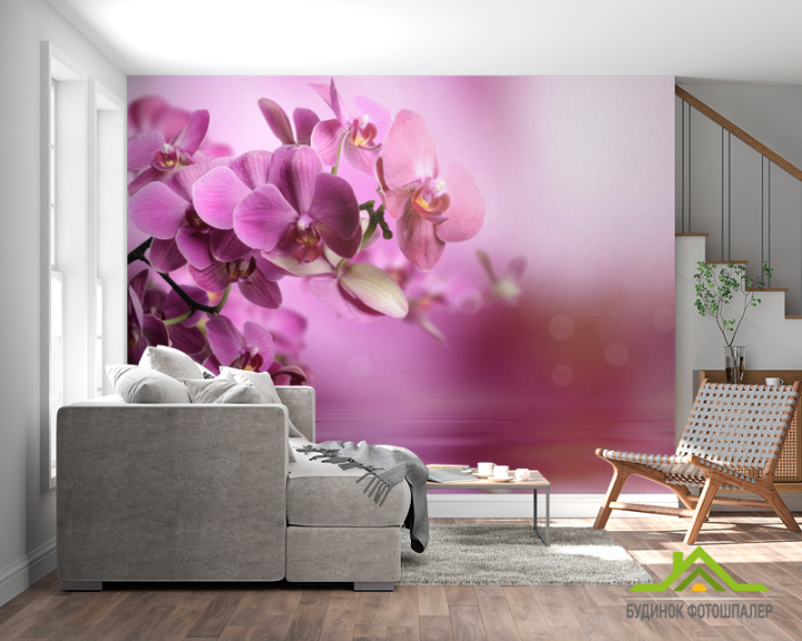Фотошпалери рожеві орхідеї над водою Фотошпалери рожеві орхідеї над водою