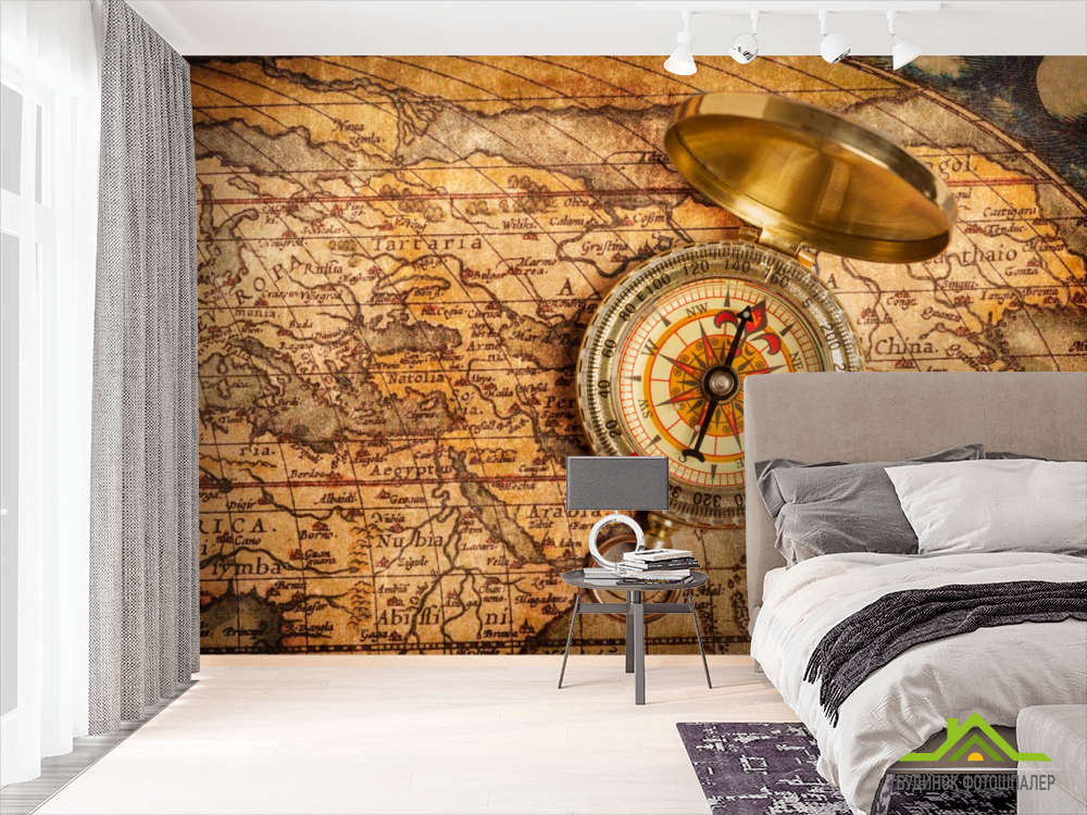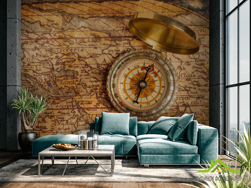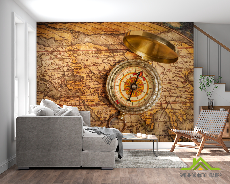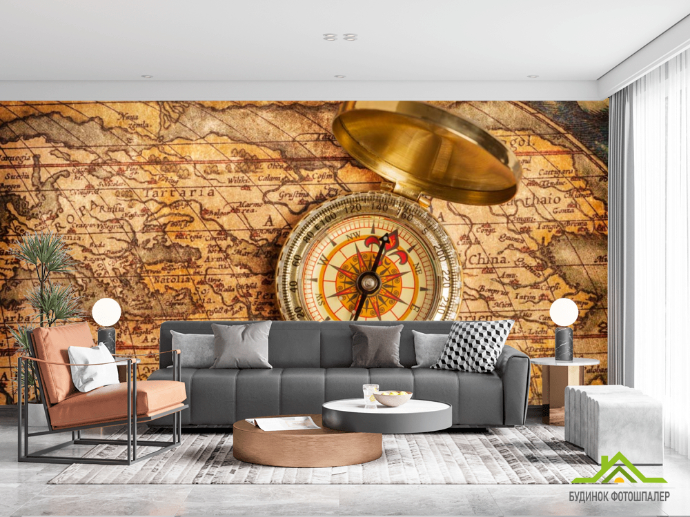 Фотошпалери Стара карта з компасом Фотошпалери Стара карта з компасом
