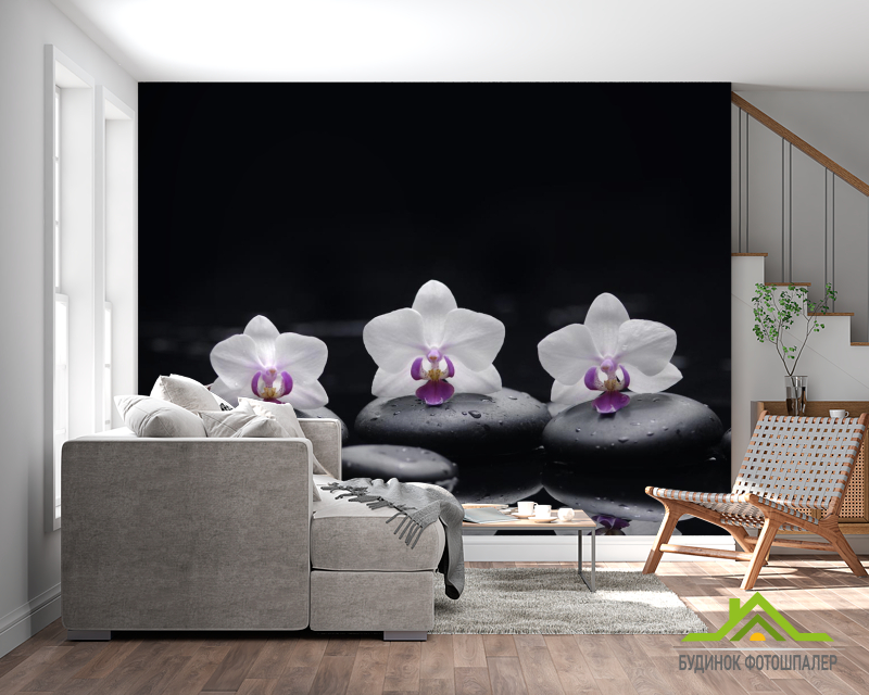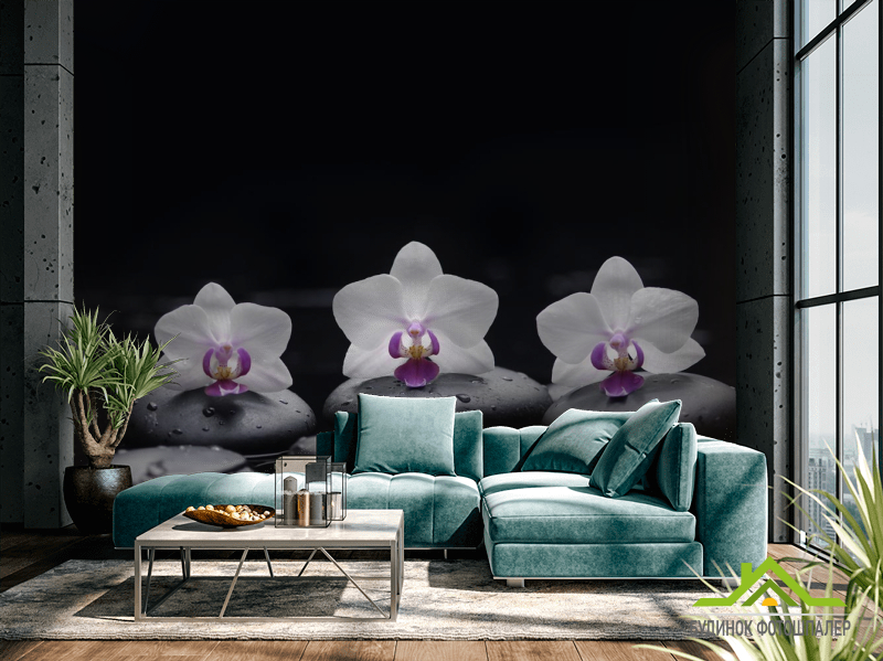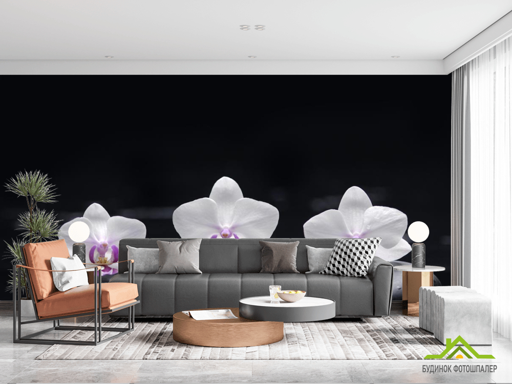 Фотошпалери білі орхідеї на чорному тлі Фотошпалери білі орхідеї на чорному тлі