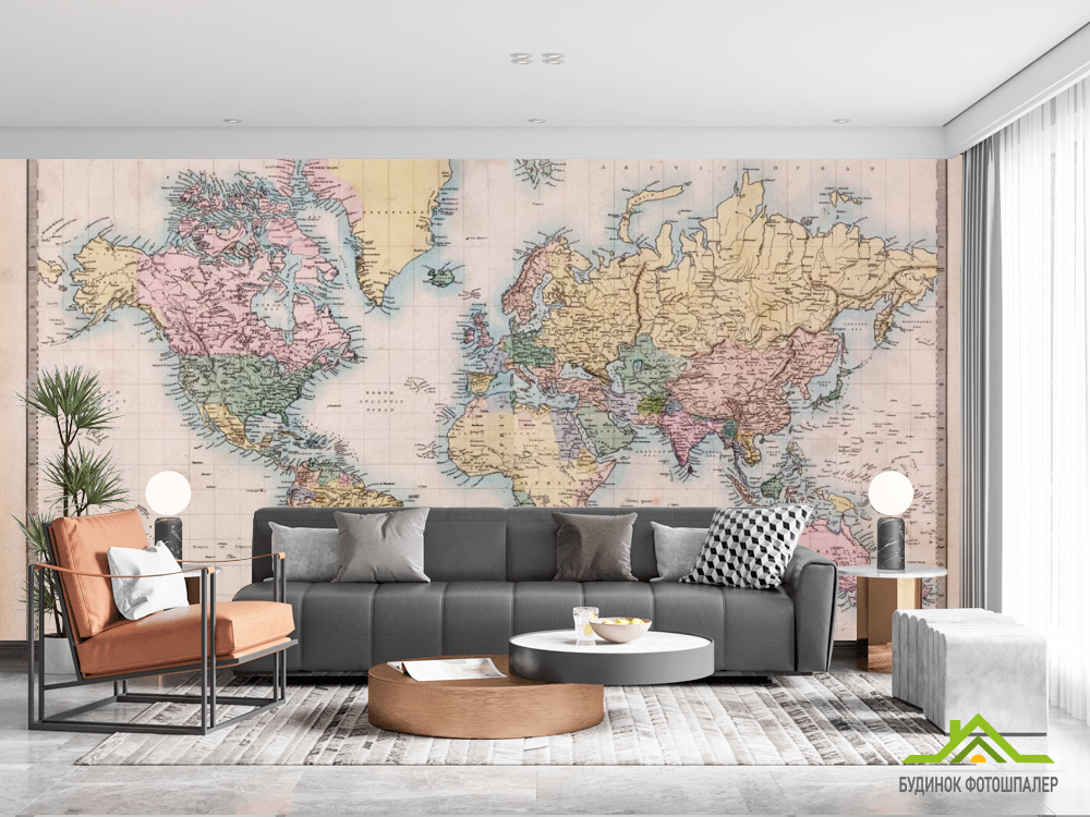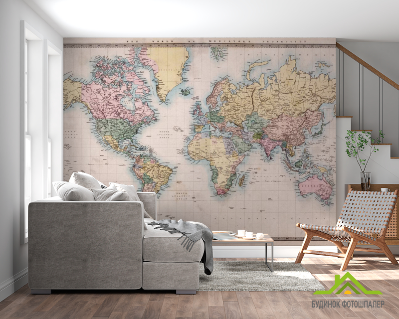 Фотошпалери Карта світу з маштабом Фотошпалери Карта світу з маштабом