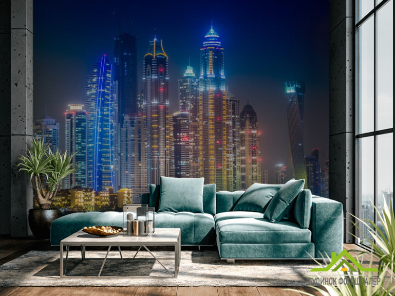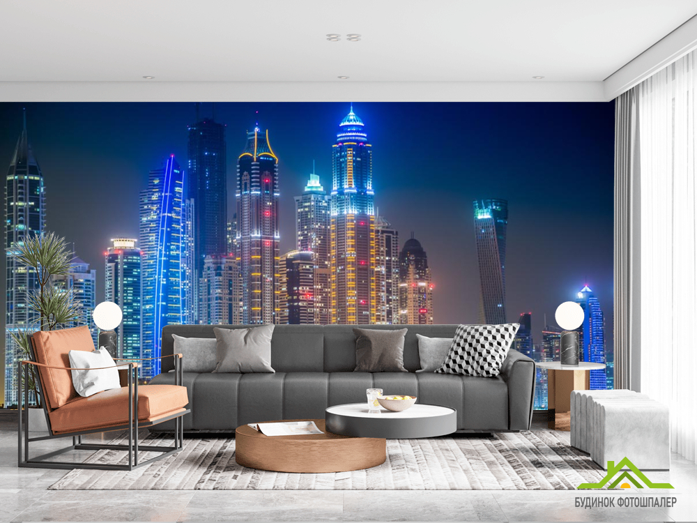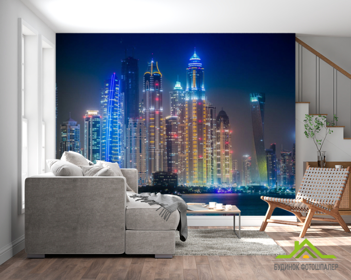 Фотошпалери сині вогні вечірнього міста Фотошпалери сині вогні вечірнього міста