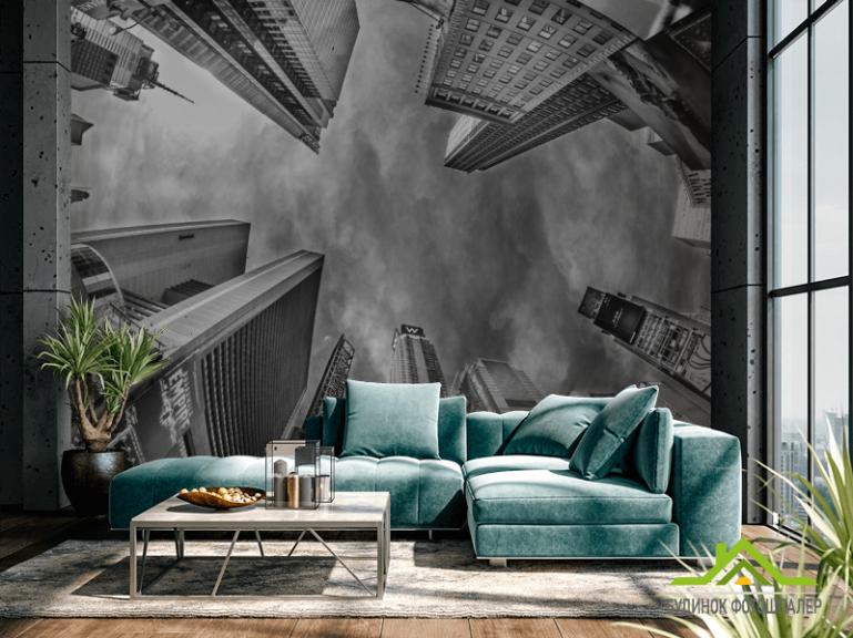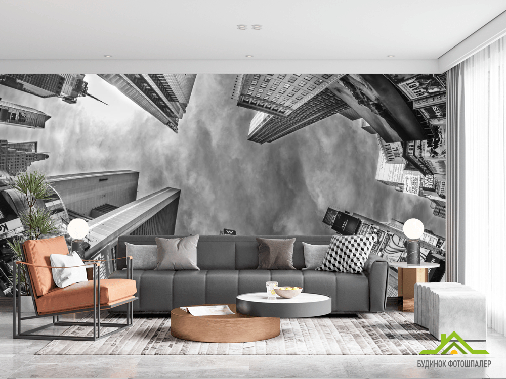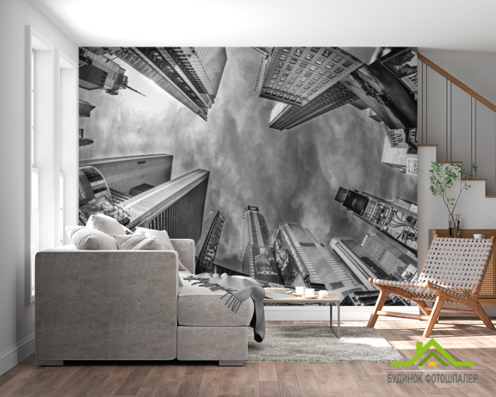 Фотошпалери верхівки хмарочосів сірі Фотошпалери верхівки хмарочосів сірі