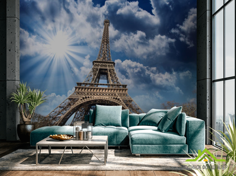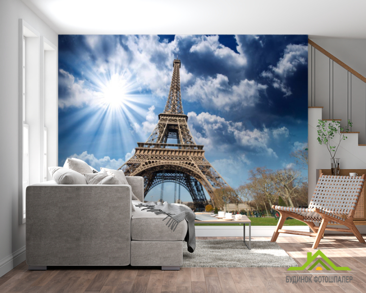 Фотошпалери сонце над Ейфелевою вежею Фотошпалери сонце над Ейфелевою вежею