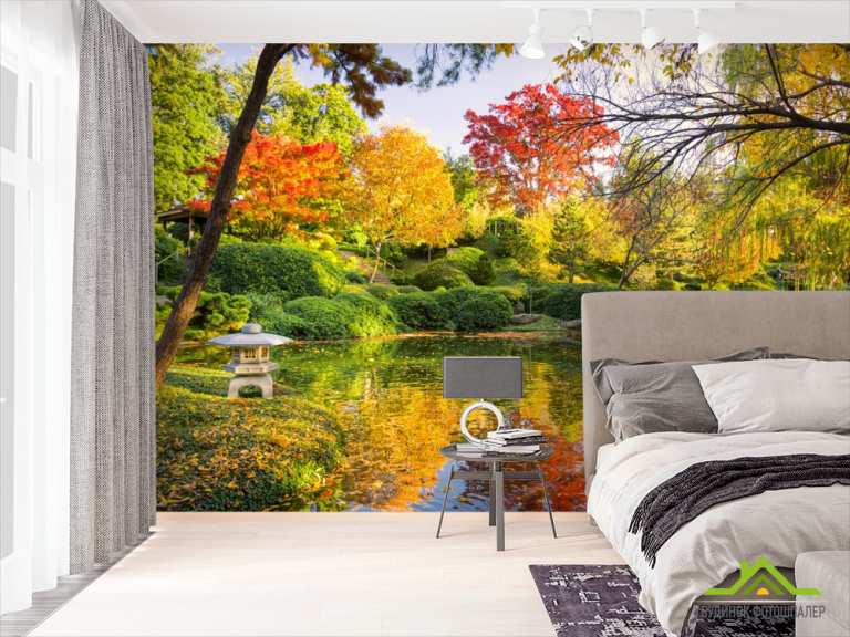 Фотошпалери осінній ліс над озером Фотошпалери осінній ліс над озером