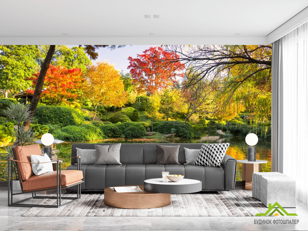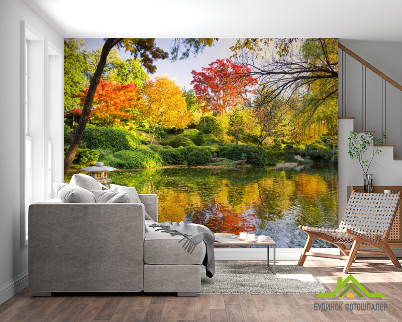Фотошпалери осінній ліс над озером