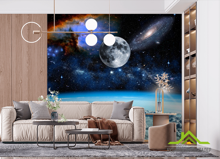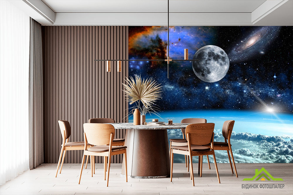 Фотошпалери космос і місяць над олаками Фотошпалери космос і місяць над олаками