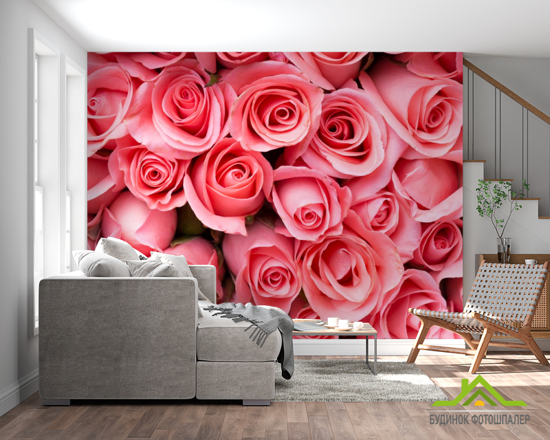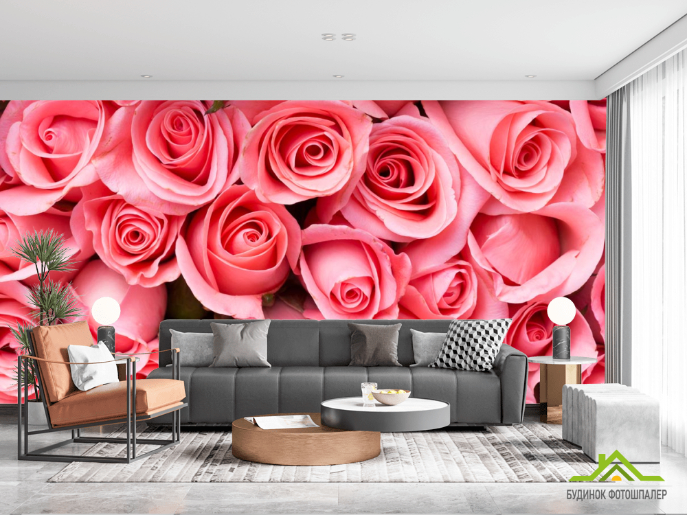 Фотошпалери яскраві рожеві троянди Фотошпалери яскраві рожеві троянди
