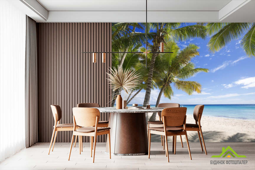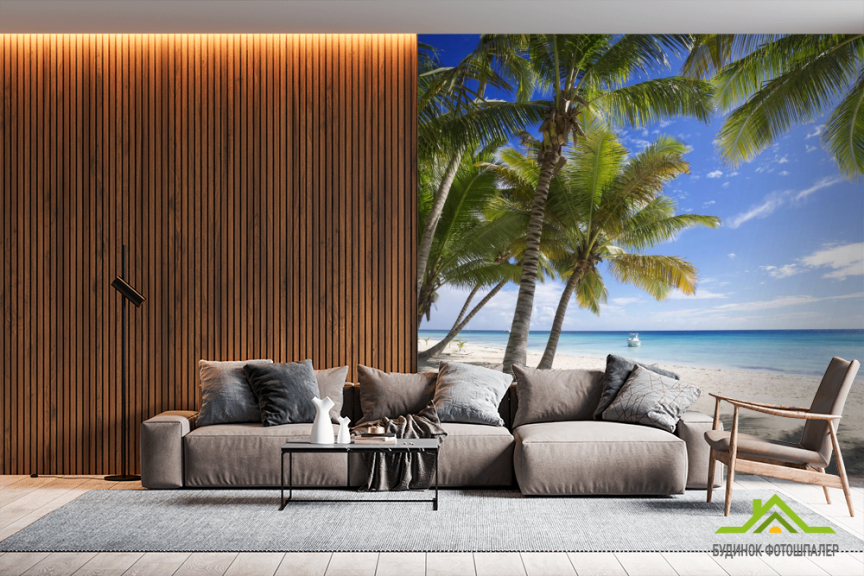 Фотошпалери тінь від пальм на березі моря Фотошпалери тінь від пальм на березі моря