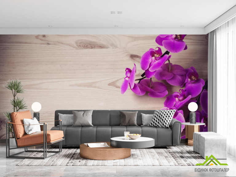 Фотошпалери фіолетова орхідея на дерев'яному тлі
