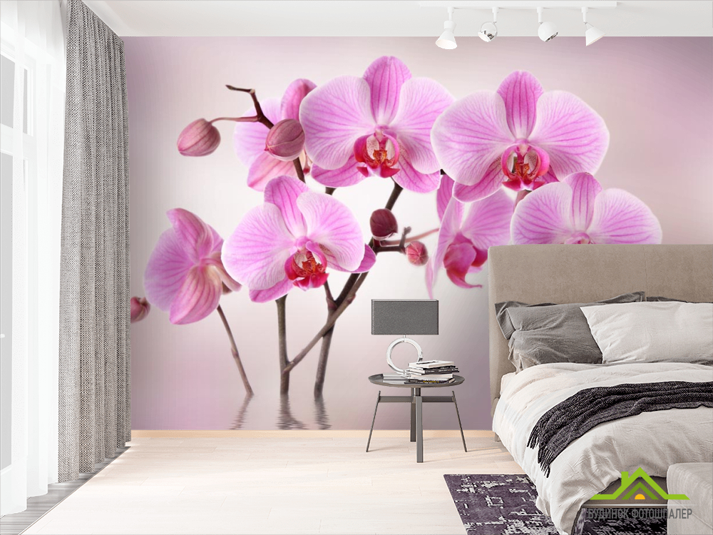 Фотошпалери бузкові орхідеї з води Фотошпалери бузкові орхідеї з води