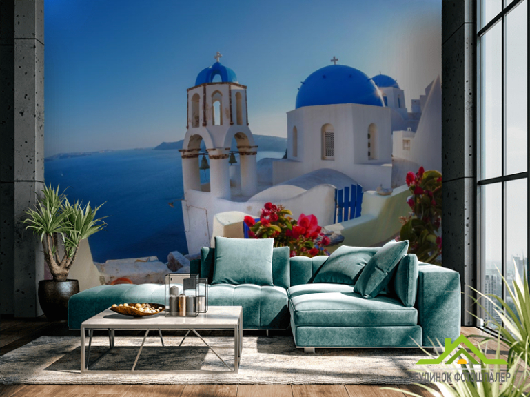 Фотошпалери білий храм над морем Фотошпалери білий храм над морем