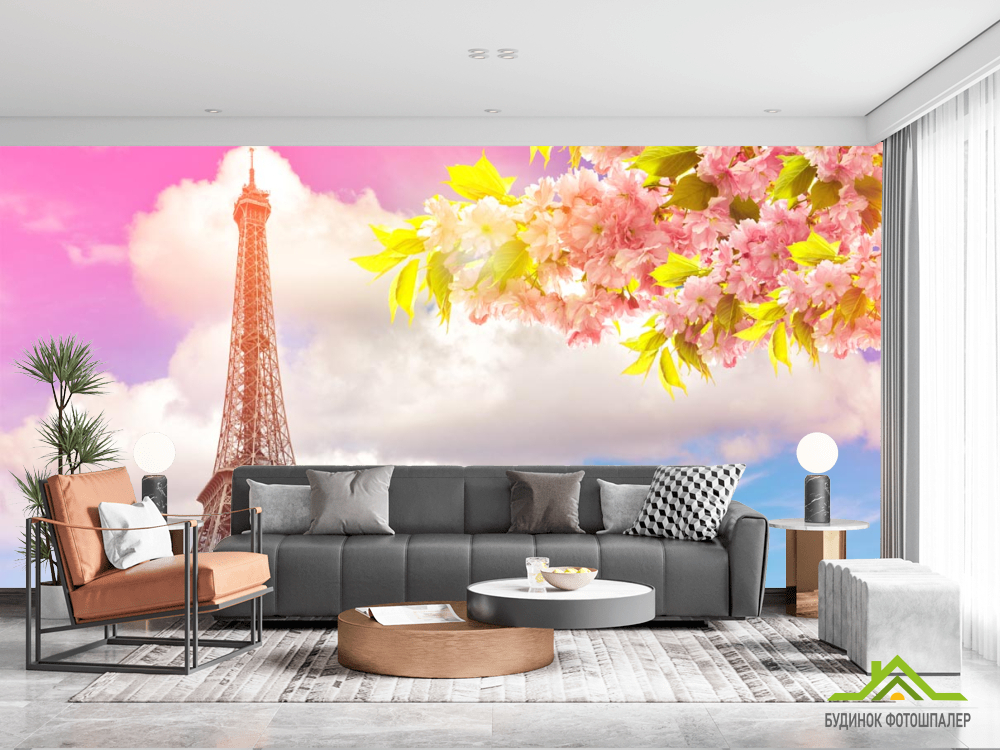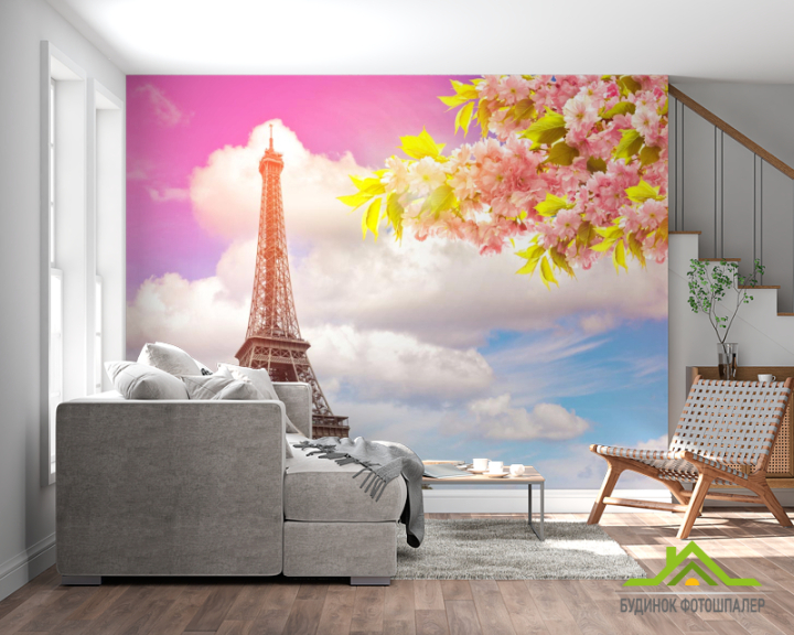 Фотошпалери рожеве небо в Парижі Фотошпалери рожеве небо в Парижі