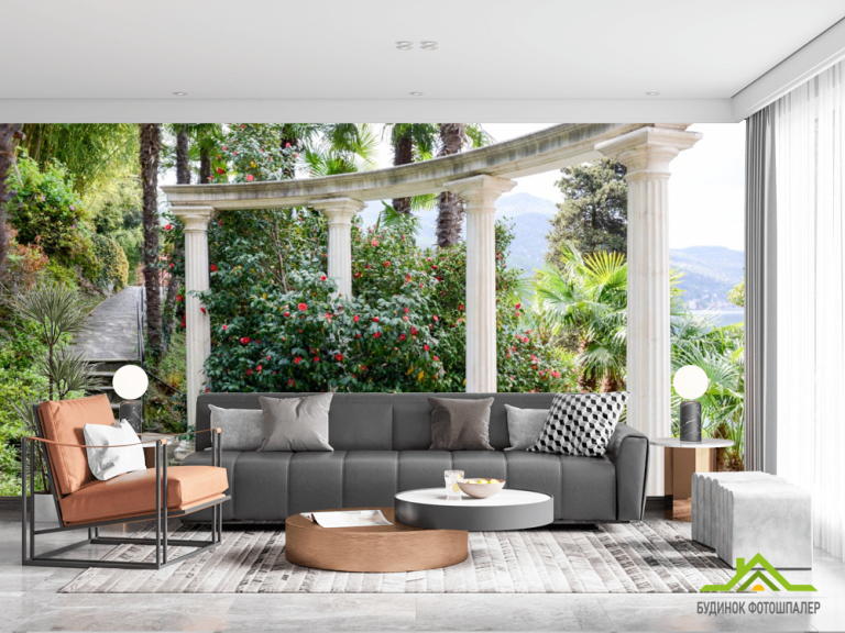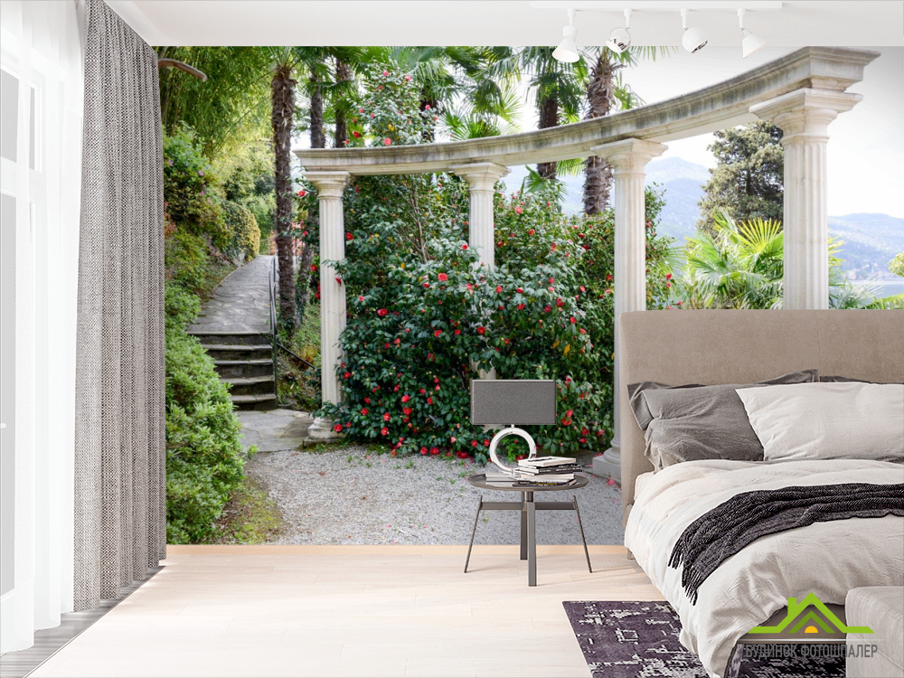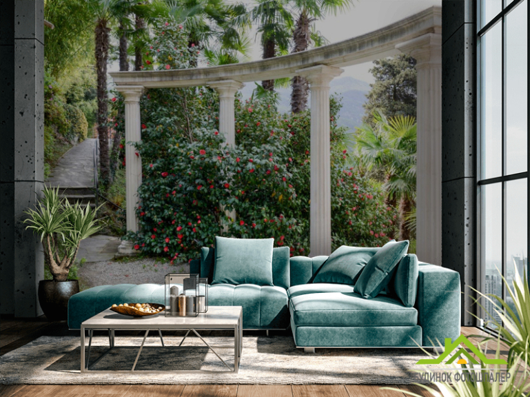 Фотошпалери білі колони в кольорах над морем Фотошпалери білі колони в кольорах над морем