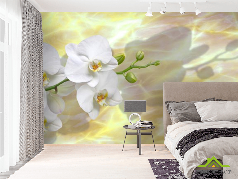 Фотошпалери білі орхідеї на жовтому фоні Фотошпалери білі орхідеї на жовтому фоні