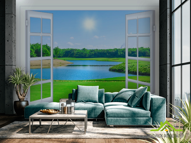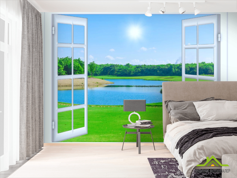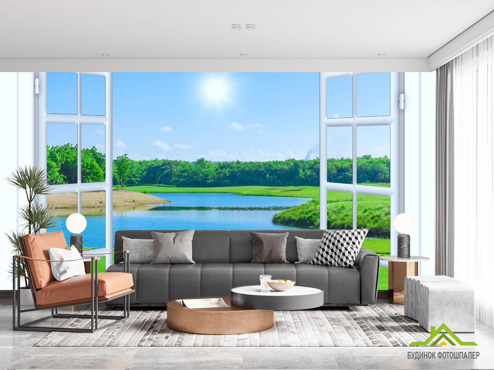 Фотошпалери озеро за вікном Фотошпалери озеро за вікном