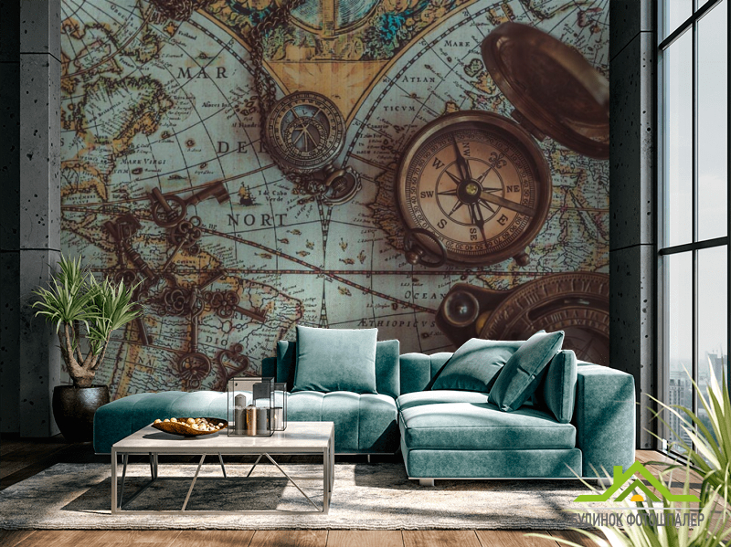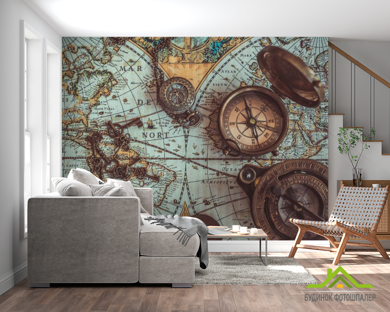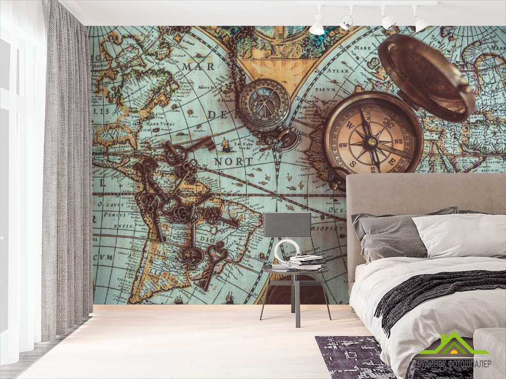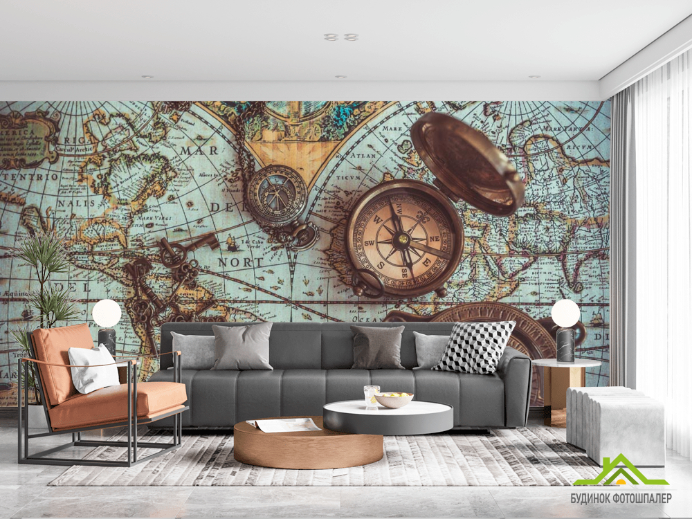 Фотошпалери Стилізована карта з ключами і компасами Фотошпалери Стилізована карта з ключами і компасами