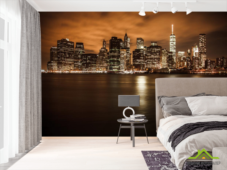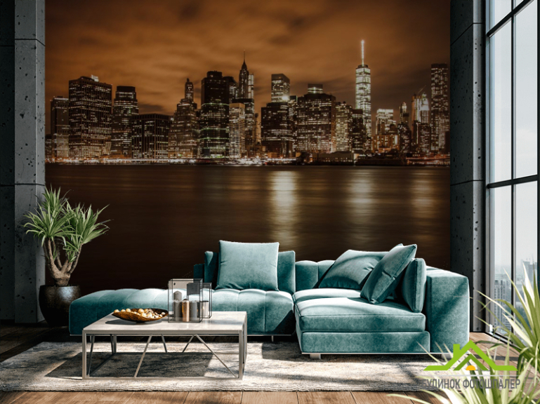Фотошпалери коричневий нічне місто над водою Фотошпалери коричневий нічне місто над водою