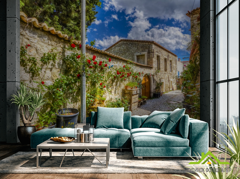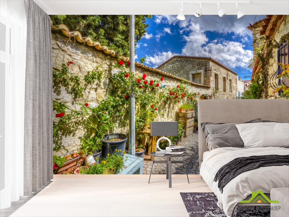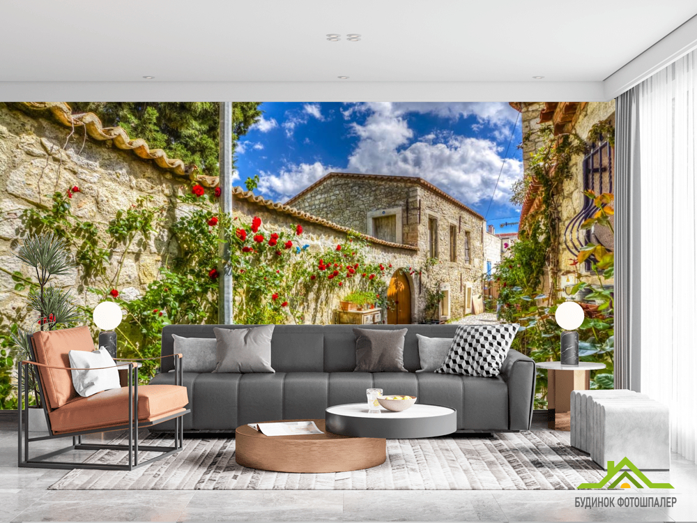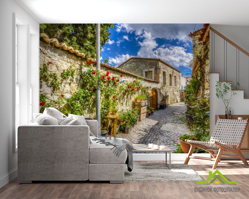 Фотошпалери провулок з трояндами