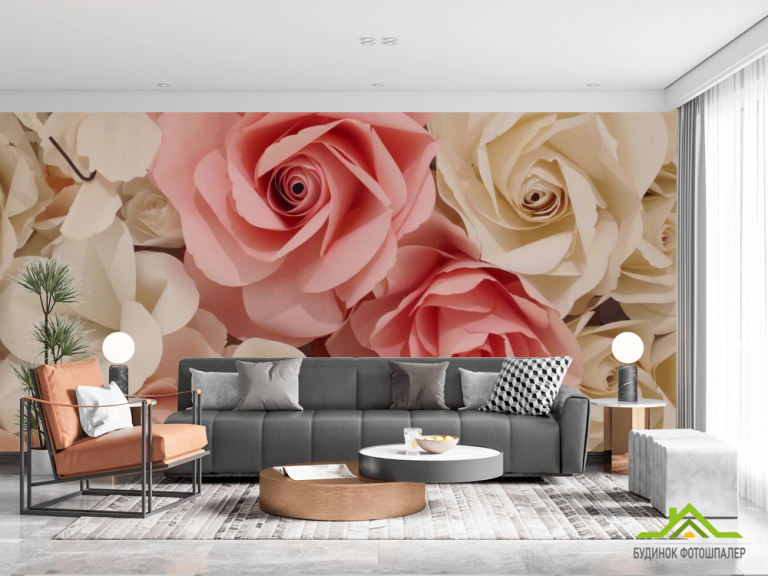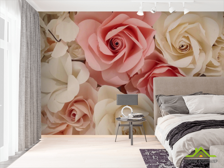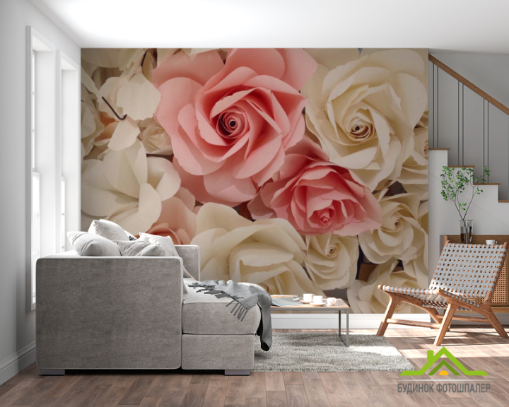 Фотошпалери білі і рожеві троянди з паперу Фотошпалери білі і рожеві троянди з паперу